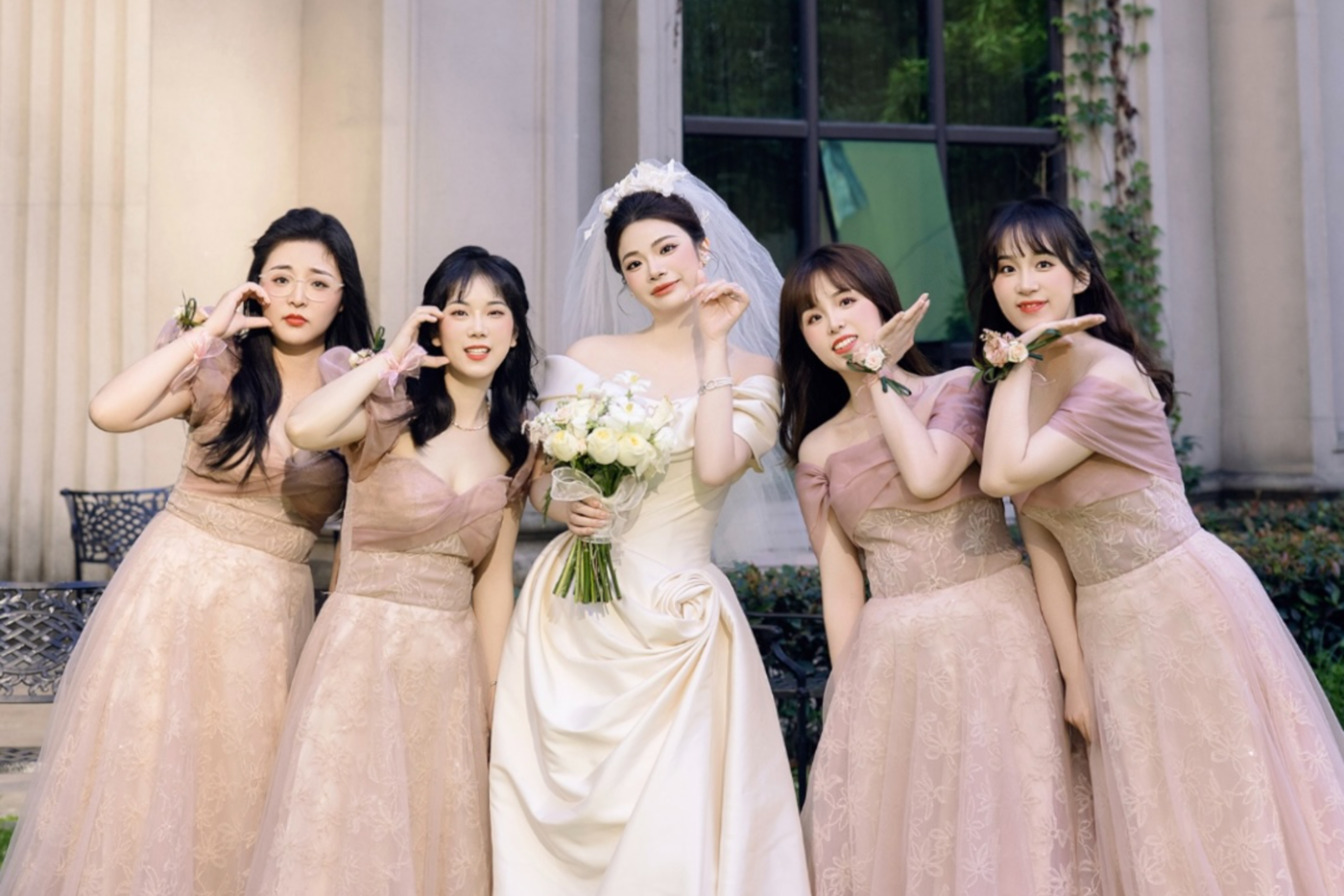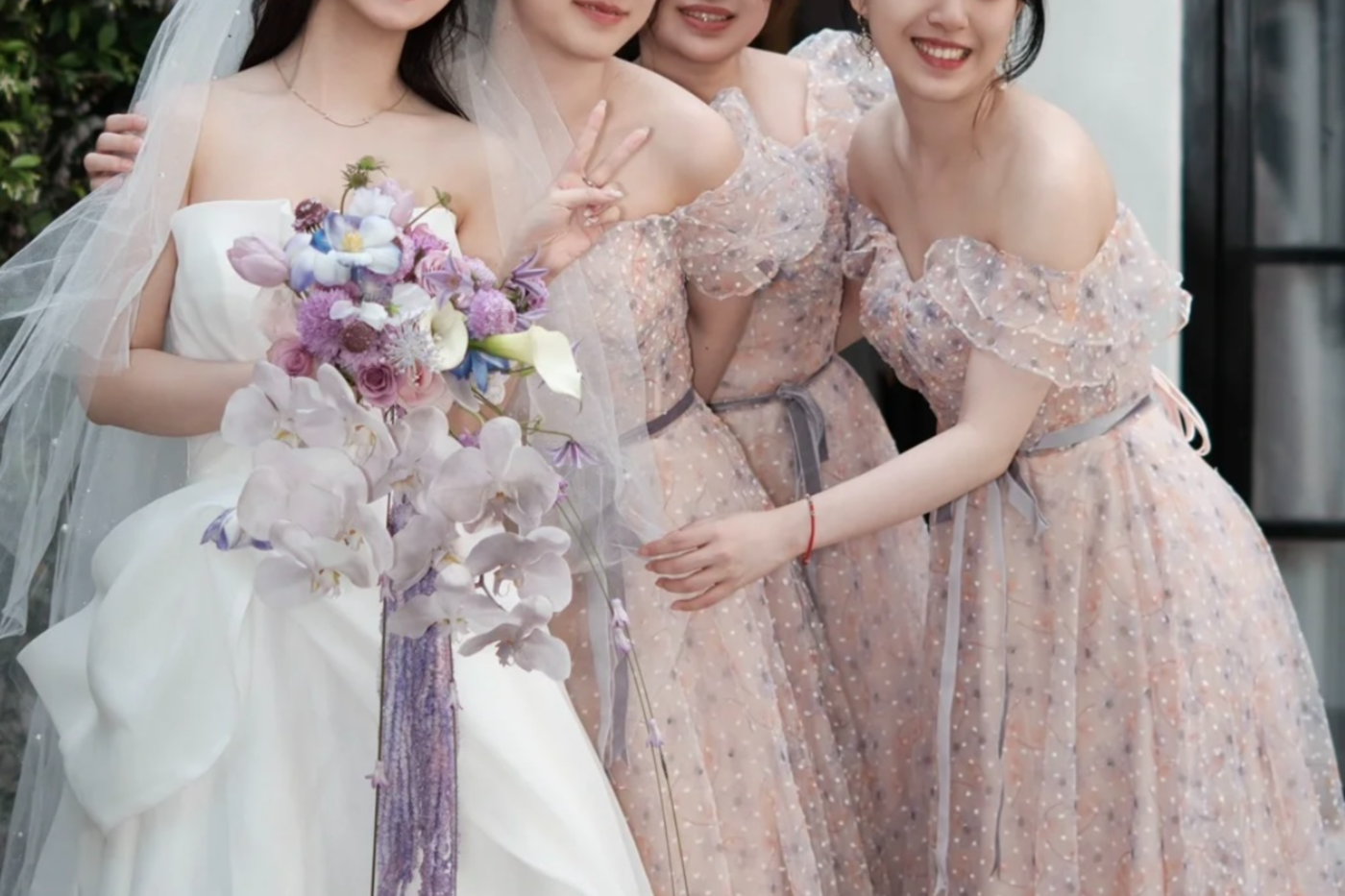 西式伴娘服—豆沙花朵长款 艾悦[更多…]
