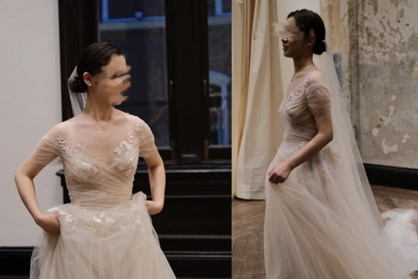- 颈间灵动立体蝴蝶结 如蝶翼掠过晨露的瞬时璀璨 网纱与光感缎拼接 展现「朦胧VS鎏光」的戏剧张力 上百朵手工立体蝴蝶花 错落缝制于裙摆 行走时如被春风惊扰的蝶群将飞未飞 静态时则化作凝固的雕塑花园 10.4射洪[更多…]