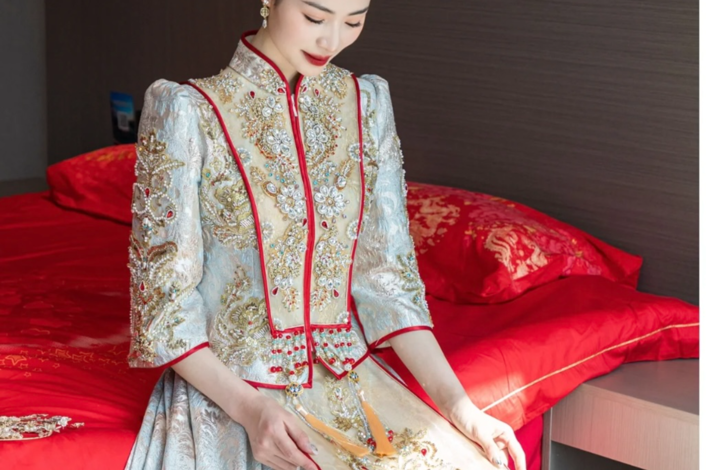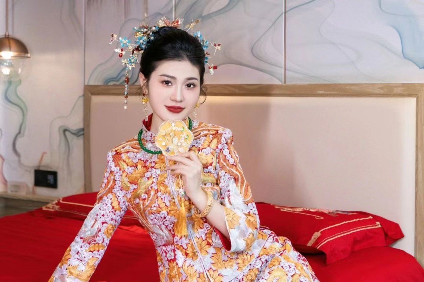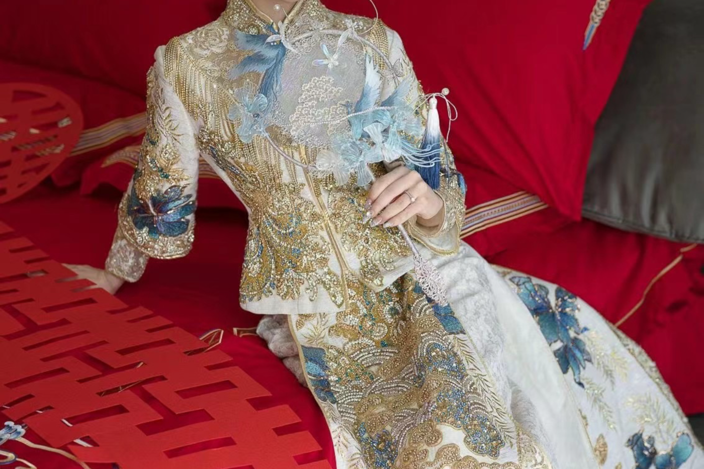 A1200 M码 全网爆火财阀千金秀禾 结合了古今审美的新中式✨ 自带瞩目夺人的金色 光芒光影流动之下色泽流转💫 - 剪裁与细节被赋予无限美感💛 在中式嫁衣含蓄式的东方美 高贵大气举止间似如藏尽千帆韵味 11.9[更多…]