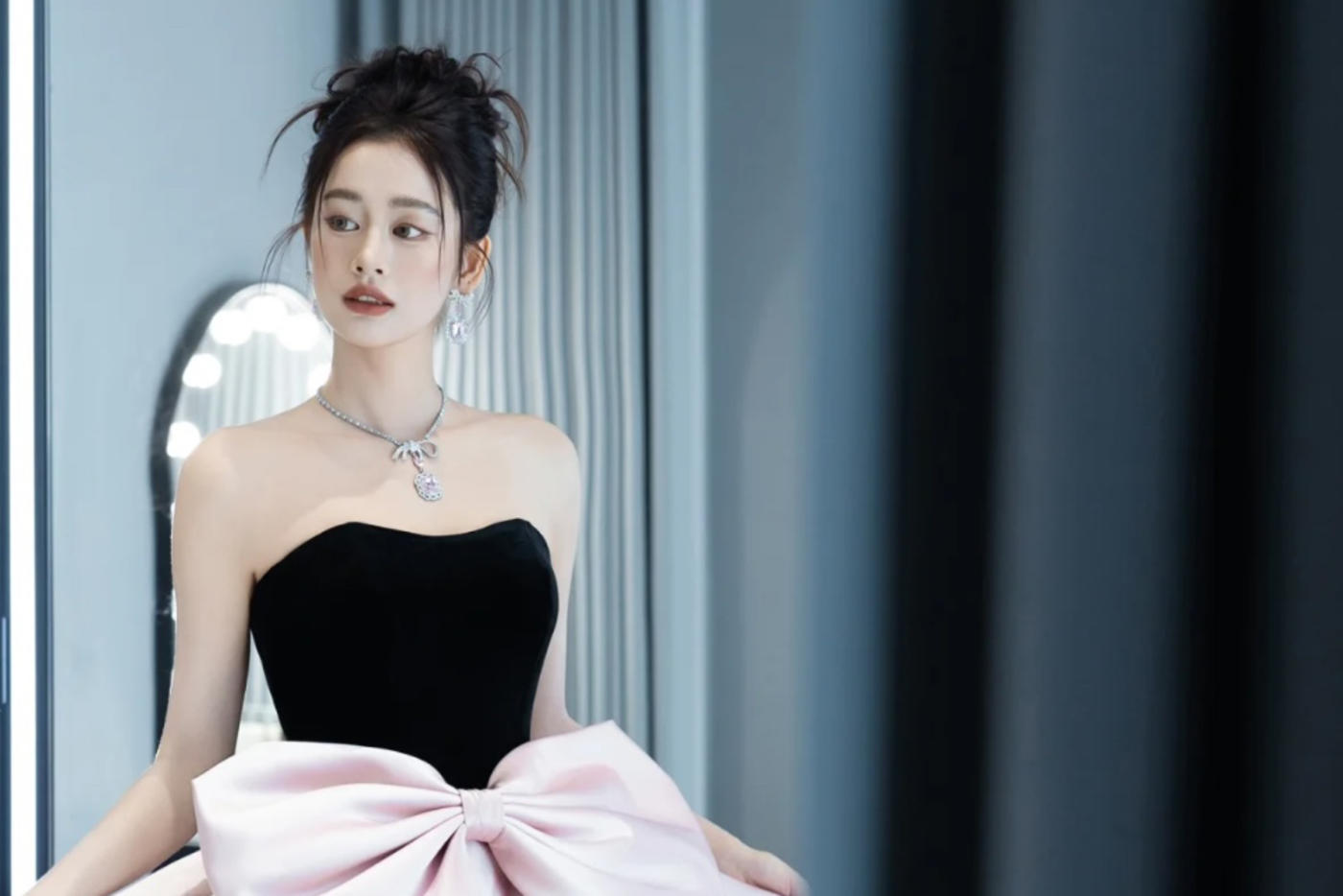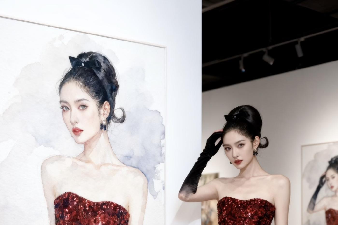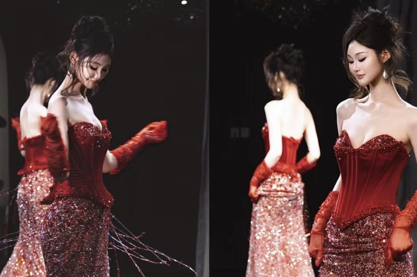 ✨这款红色钉珠拼接礼服裙采用高定面料,上半身密钉亮片+镜面冷压工艺,blingbling如星河般闪耀。平口抹胸+高收腰设计,贴身剪裁,轻松展现黄金腰臀比💃。下半身红色褶皱长裙,垂坠感满分,整体造型优雅又华丽,红毯、婚礼、高端宴会都超适合!搭配黑色长手套,复古氛围感直接拉满✨。[更多…]