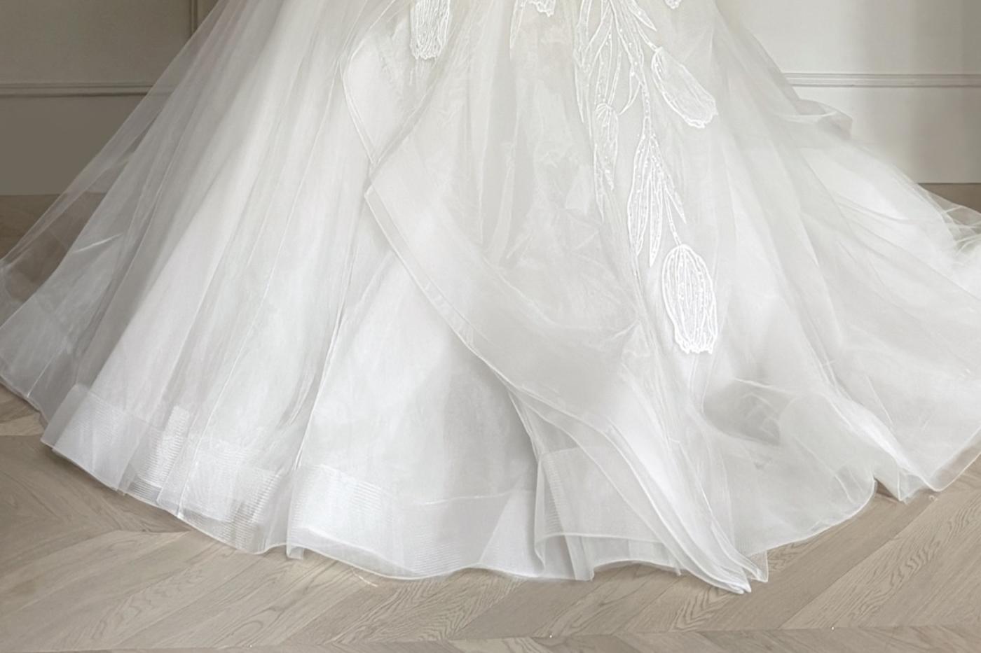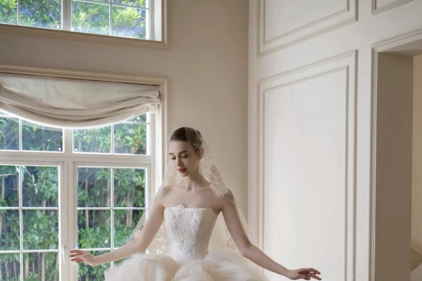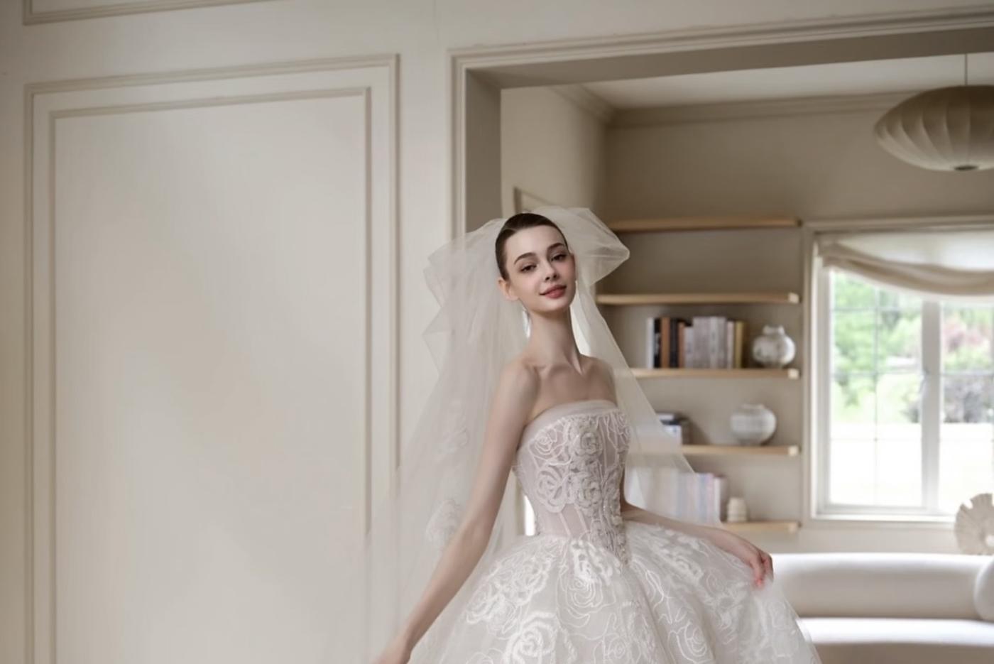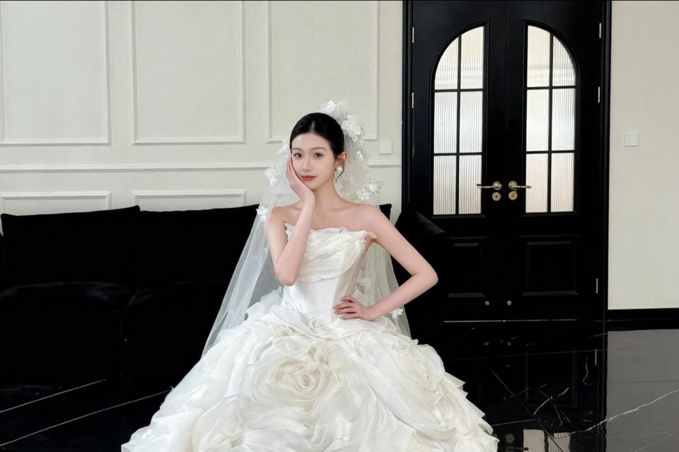 这才是富家千金的本命婚纱! 一眼万年的神仙婚纱来了! 上身:精致抹胸+满钻重工,美得移不开眼! 裙摆:蓬松大拖尾+立体花瓣,轻盈又灵动 头纱:鲜花头纱搭配长头纱,仙气十足[更多…]