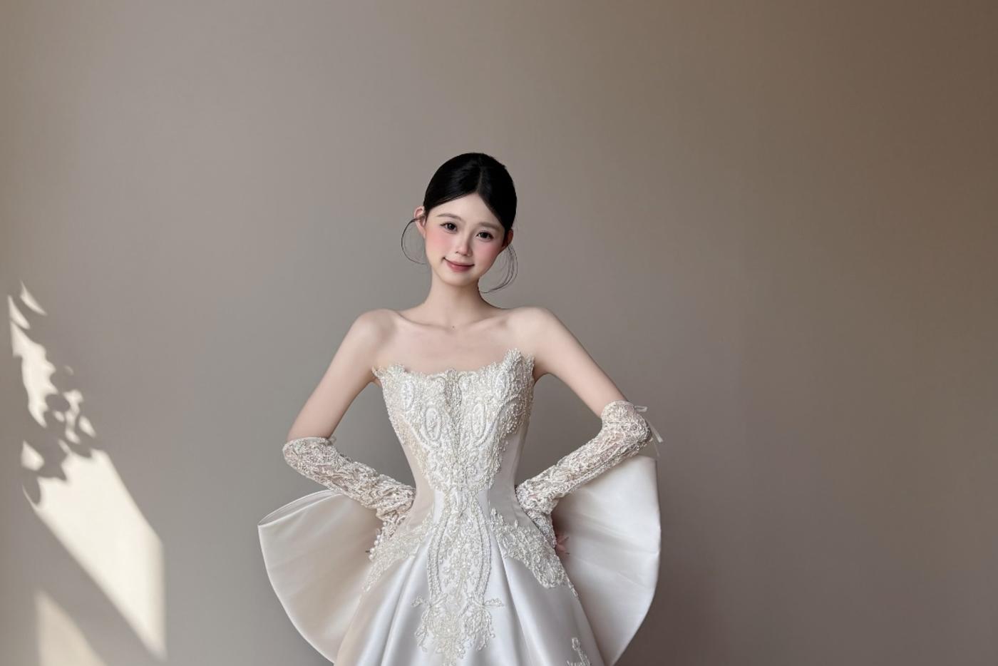 穿上抹胸复古蕾丝婚纱,肩颈线条完美勾勒,腰部抓褶云朵裙摆灵动仙气,光线下泛着星光,自带氛围感滤镜,宛如童话公主。 26.5.4(2备选) 26.5.17(1备选)[更多…]